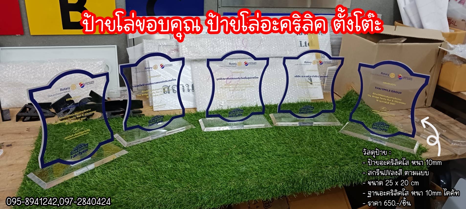 สินค้า ใน ป้ายโล่ขอบคุณ ป้ายโล่อะคริลิคตั้งโต๊ะ (1 ชนิด)